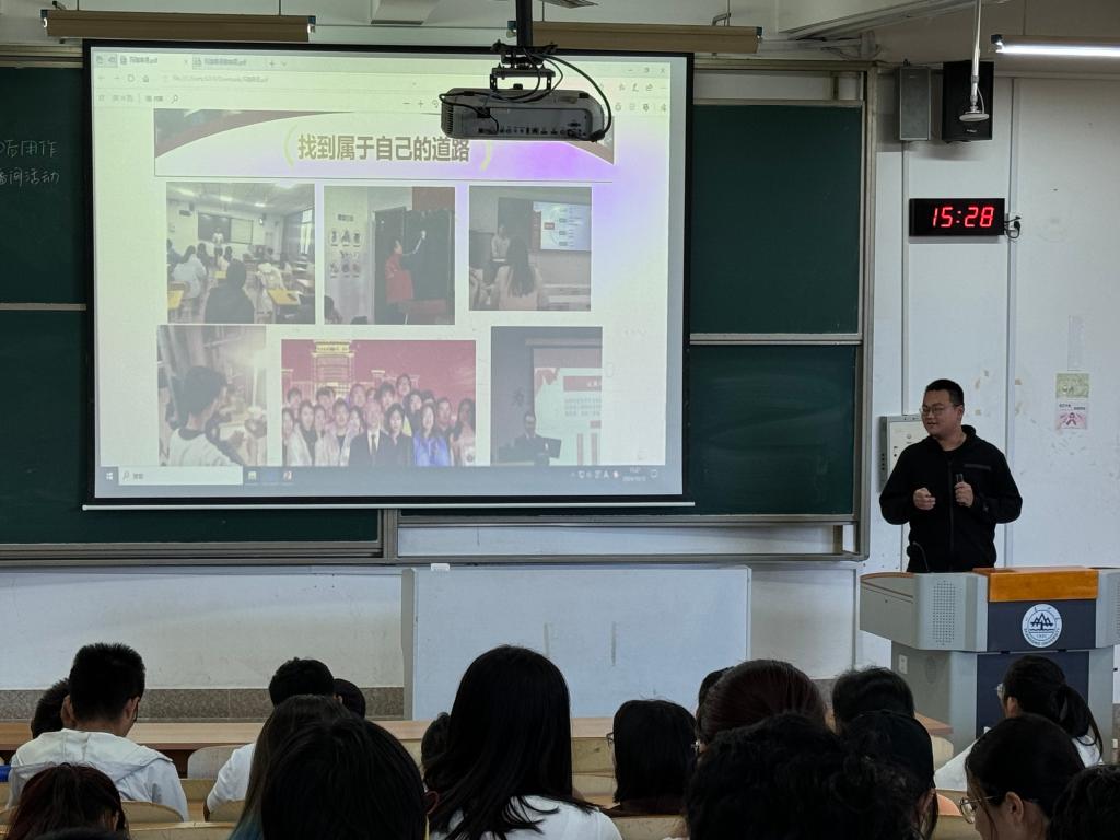 本站讯 为充分发挥同辈榜样引领作用,帮助新生尽快明确奋斗目标,10月12日下午,万象城娱乐awc线路于学院楼356举办“玛珈青语”新生篇暨第二十六期“励志周末”活动。在课程学习、社会实践、科研竞赛方面分别取得优异成绩的范少飞、张维佳、柳宿辰作为活动分享人,为2024级学生分享经验。万象城娱乐awc线路150余名新生现场参加活动。