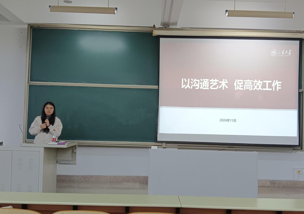 活动伊始,崔巍用生动形象的情景案例引入学生工作中的沟通问题,通过讲解萨提亚沟通的五种模式,引导学生认识到一致性沟通在学生工作中的重要性。随后,基于实际工作中所遇到的沟通难题,崔巍从沟通流程、沟通形式、沟通对象三个方面进行具体讲解。她指出任务布置、工作开展、梳理总结等各流程中所需注意的重点问题,提醒学生干部理清工作要求,适时汇报进展;她详细介绍了线上和线下、书面和口头等沟通形式的规范要求和适用场景,并指导学生根据实际情况有选择性地使用合适的沟通形式;此外,她以同学、同事、老师等沟通群体为例,提醒学生干部在沟通过程中注意换位思考。最后,崔巍用三个实际情境进行分析讲解,指导学团组织成员灵活运用所学技巧,以合适的沟通方式促进工作的高效开展。