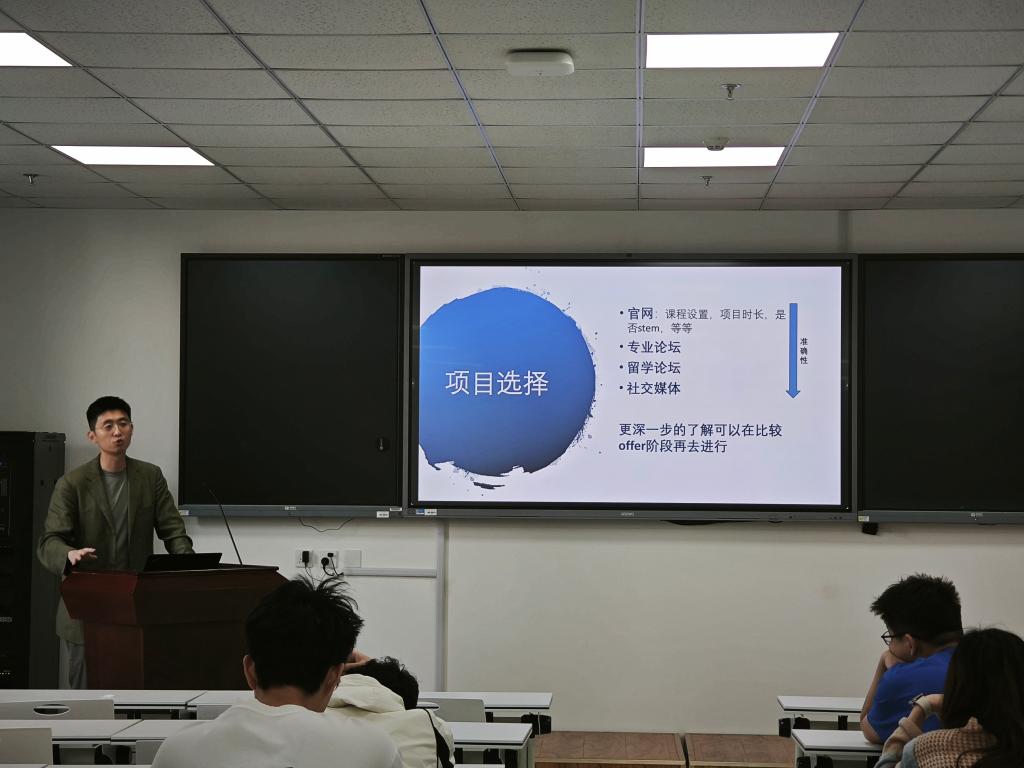本站讯 为助力同学们提升留学申请竞争力,做好发展规划,5月16日下午,万象城娱乐awc线路于北衡楼1420室举办第三十期“励志周末”活动之数统交叉学科留学申请策略分享会。本次活动邀请了芝加哥大学布斯商学院工商管理硕士彭秋迪担任主讲嘉宾。