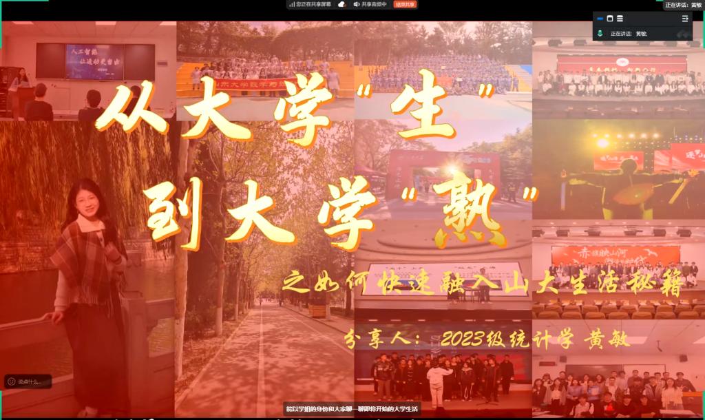 本次讲座中,陈明涛从专业视角出发,围绕大学数学课程体系、学习方法及学科发展前景展开讲解,为新生搭建起对专业的初步认知框架。三位学生代表则结合自身实践,分别从学生工作(如组织选择、活动组织经验)、专业学习(如专业概况、高效复习技巧)、学术科研(如科研项目参与、实践经验分享)三个核心维度,分享了实用经验与成长感悟,内容兼具针对性与实用性。