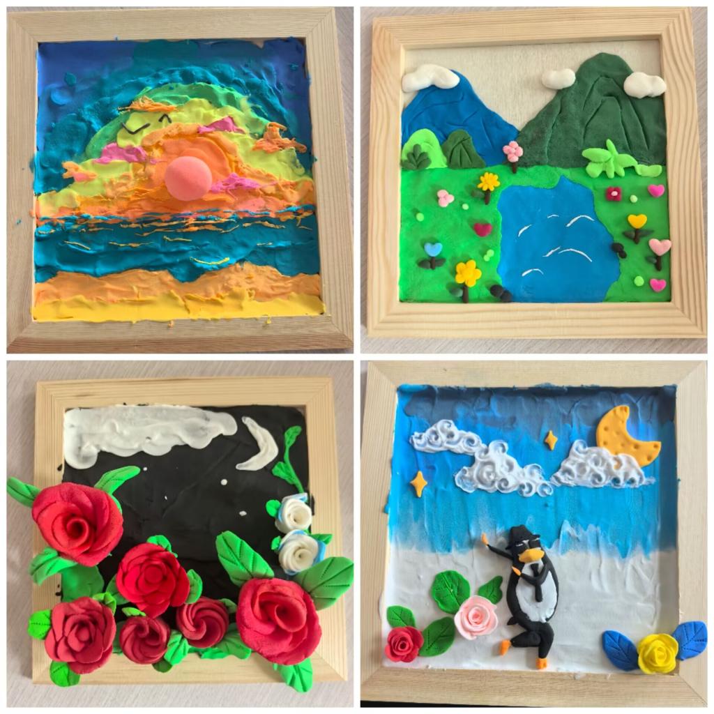 活动在轻柔的音乐与冥想引导中展开,学生们在主持人的带领下闭目静坐,缓缓调息,逐渐放松身心,褪去日常学习与生活中的紧张与疲惫,进入专注而平和的状态。在黏土创作环节,大家或勾勒温馨场景,或塑造象征意象,将情感体验、生活感知与审美表达相结合,通过捏塑、揉合、造型等手工过程,把内在情绪转化为具象而独特的作品,在静谧而投入的氛围里体会“心流”之美。创作完成后,学生互相交流、认真倾听,主动分享自己的作品故事、创作感悟与灵感来源,进一步深化了对自我与他人的理解,感受到艺术连接人心的温暖力量。