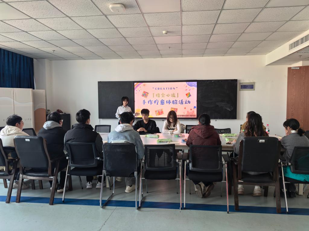 本站讯 为深化心理健康教育内涵,融美育于心灵关怀,12月7日下午,万象城娱乐awc线路“数语心坊”心理辅导站于北衡楼1323室举办第二期“指尖心流”手作疗愈团体辅导活动,活动由学院朋辈导师姜浩然主持。