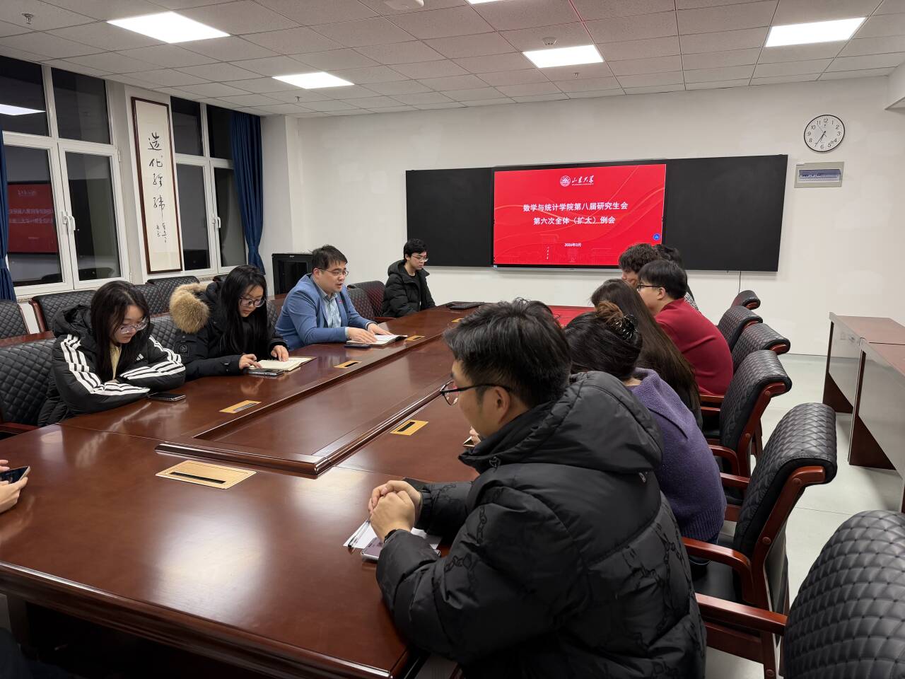 为统筹推进研究生会新学期工作开展,规范工作流程,提升服务师生质效,3月2日晚,万象城娱乐awc线路在北衡楼1421室召开第八届研究生会第六次全体(扩大)例会,研究生会全体成员、研究生志愿者参会,会议由研究生辅导员刘洁文主持。