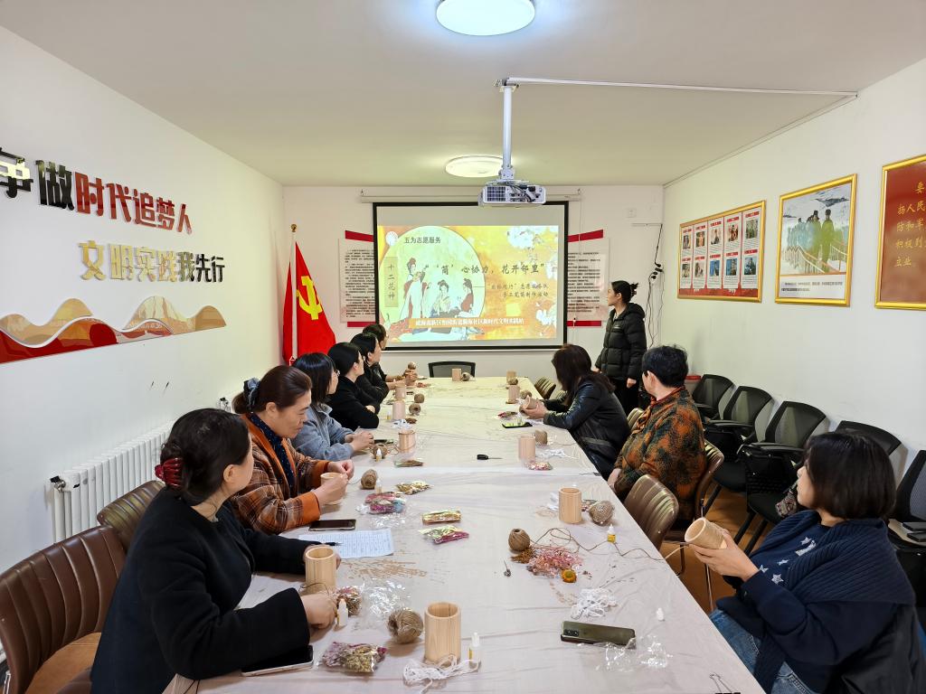 在手工制作环节,志愿者分步演示制作流程,耐心指导居民进行构图、拼贴、装饰与固定,打造专属手工笔筒。大家在动手实践中充分发挥创意,交流创作心得,将传统花卉文化与手工创作巧妙融合,在轻松愉悦的氛围中感受传统文化之美,现场洋溢着欢声笑语,氛围热烈而浓厚。