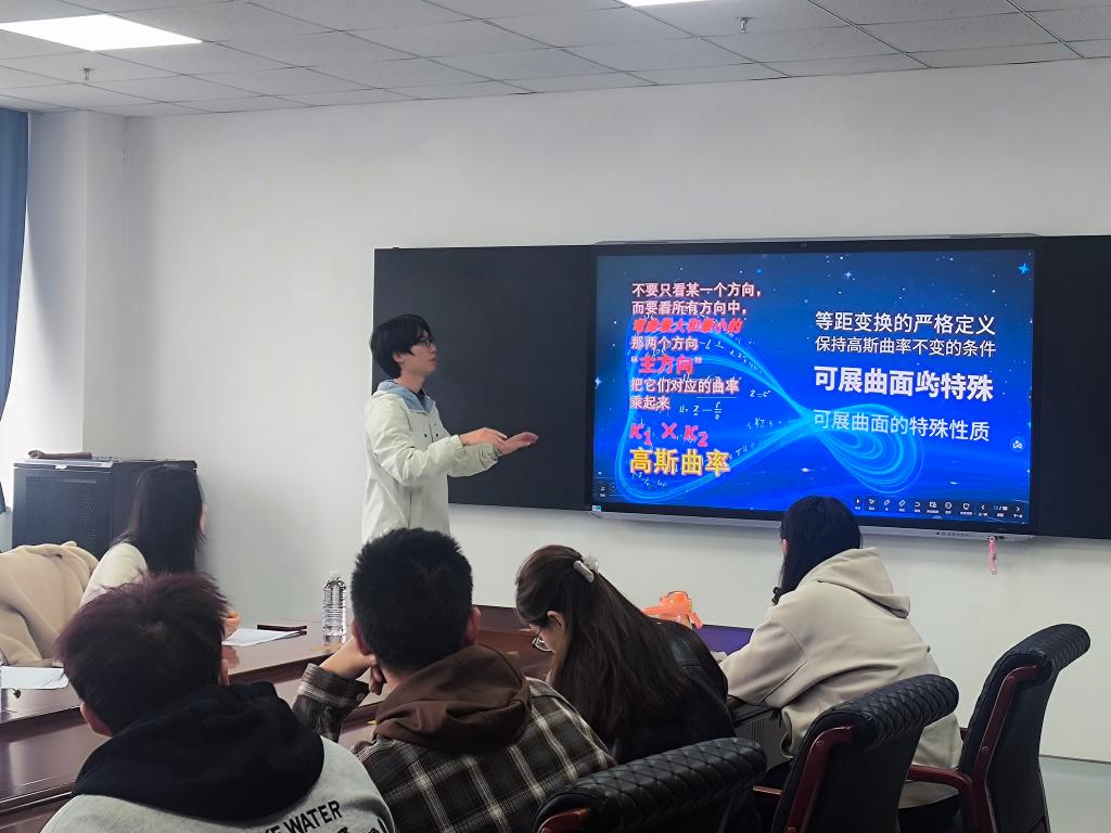 决赛现场,8位选手按抽签顺序依次登台,围绕“数学与自然”“数学与生活”“数学与建筑”等多个主题展开精彩分享。选手们或解读向日葵中的斐波那契数列、建筑设计中的黄金比例,或剖析人脸识别算法模型,表达流畅、情感充沛、思辨严密,赢得现场阵阵掌声。其中,赵启正同学以“威海的海岸线究竟有多长”为切入点,围绕海岸线悖论阐释分形概念,让观众在熟悉场景中领略数学之美,讲解兼具趣味性与知识性;仲伟赫同学聚焦经典博弈模型“囚徒困境”,剖析其背后的数学原理,深入探讨“当理性成为唯一标尺,如何打破困局”这一命题,立意深刻,发人深省。