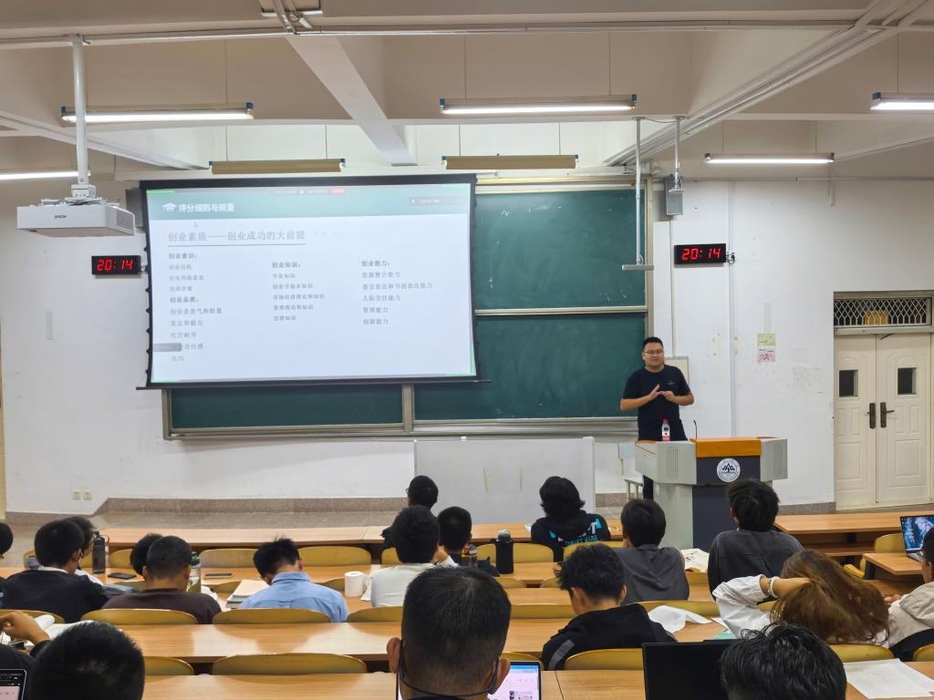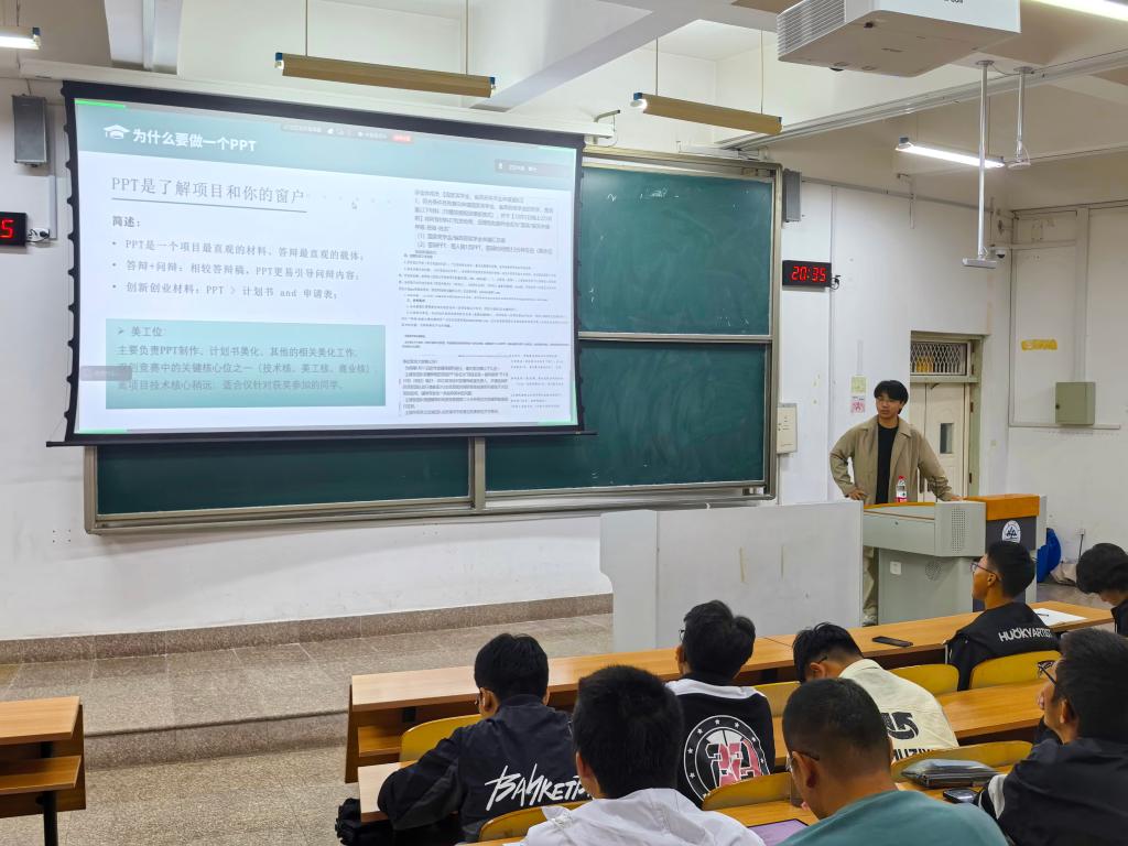 本站讯 10月9日,万象城娱乐awc线路在学思楼356举办第二十期“一起创”暨“青苗计划”第四期培训科创辅导讲座。本次活动以“成果淬炼——项目的呈现与答辩技巧”为主题,帮助新生进一步熟悉科创流程,提升科创成果展示技能。本次辅导讲座由朋辈科创导师吴博森、范少飞、柳宿辰主讲,80余名新生参加活动。