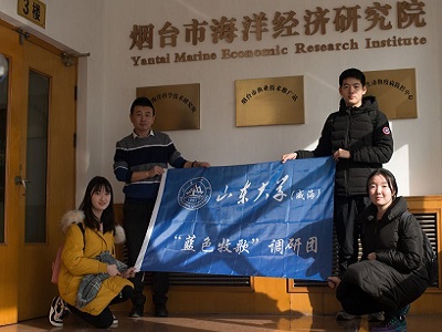 上午9时,团队成员来到了烟台市海洋经济研究院,副院长姜作真和副主任张金浩接待了团队成员。首先,团队成员就海洋牧场发展的相关问题对姜院长和张主任进行了访谈。在访谈过程中,姜院长和张主任不仅回答了团队成员的问题,还向团队成员介绍了他们现阶段的一些研究成果。访谈结束后,张主任填写了团队设计的调查问卷,对海洋牧场综合效益评价指标的重要性程度进行打分和排序,并给予团队成员有关数据收集和问卷设计方面的建议。临别前,团队成员与张主任于研究院门口合影。至此,本次调研顺利结束。