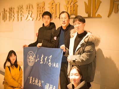 下午2时,团队成员到达烟台市海洋发展与渔业局,项目管理科科长王宏亮接待了团队成员,并接受了访谈。首先,团队成员从烟台市海洋牧场发展历史、发展现状、扶持政策、环境影响等多个方面展开了访谈,王宏亮科长对团队成员提出的问题进行了回答。接下来,王宏亮科长填写了团队成员制作的调查问卷,对海洋牧场综合效益评价指标的重要程度进行打分与排序。随后,团队成员来到渔业科,向工作人员获取烟台市渔业方面的相关统计数据,并请求渔业科科长填写调查问卷。最后,团队成员与王宏亮科长合影留念。至此,本次调研顺利结束。