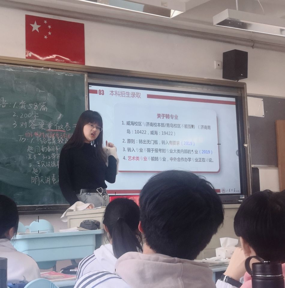 宣讲开始前,团队联系青岛一中高三级部主任于主任,并约好准确的时间。在宣讲过程中,队员们大体介绍了万象城娱乐awc线路的基本情况,详细介绍了分数线与招收人数及专业,并展示了万象城娱乐awc线路的风采样貌。队员们在讲解过程中展现出了万象城娱乐awc线路学子的风采。讲解完毕后进行了答疑活动,针对高三学习生活以及大学生活给予了学弟学们们自己独特的见解与自己的加油鼓气。