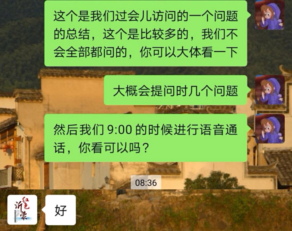 访谈开始之前,团队联系红色沂蒙旅行社的负责人马学彪,介绍团队的调研主题和内容,确定同意访谈相关内容,并在访谈开始之前再次确认双方的时间。在采访过程中,队员与旅行社负责人交谈十分融洽,问题的询问与解答衔接良好。对于团队提出的问题,旅行社负责人分条分问题给予了详细的答复,并且介绍了大环境下行业的艰辛,表达了对未来的展望,同时为团队提供了许多建设性意见。此次采访使团队获取了大量有用的信息,队员详细记录收获颇丰,团队对课题研究有了更明确地方向。