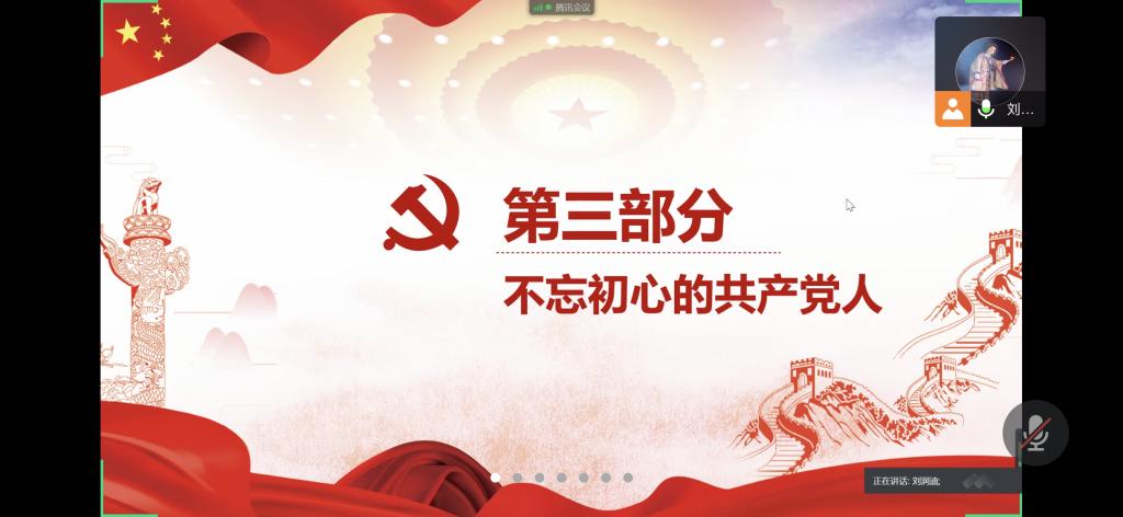 活动伊始,刘润迪首先带领大家重温党的历程。同学们一起观看了一段党史年报,里面记录了建党99周年以来的重大历史事件。刘润迪还向大家普及了为何将7月1日作为建党纪念日。随后,她通过知识竞赛的方式,帮助大家了解党的知识,使同学们对于党的基本历史、党的初心使命和党的时代理想等内容有了更深刻的理解。紧接着,刘润迪向大家展示了一批不忘初心的共产党人,鼓励大家以他们为榜样,指引前行的方向。他们是人大代表申纪兰、院士钟南山、军人韦昌进和北京大学援鄂医疗队全体“90后”党员。最后,刘润迪结合新时代青年人的使命向大家介绍如何做到不忘初心跟党走。她强调,同学们应该做到坚决拥护中国共产党的领导,遵守各项规章制度,同时努力学习科学文化知识,加强道德修养,还应该明辨是非,以自身正能量感染、带动身边的人,满怀对党和国家的感恩之情,听党话、跟党走。