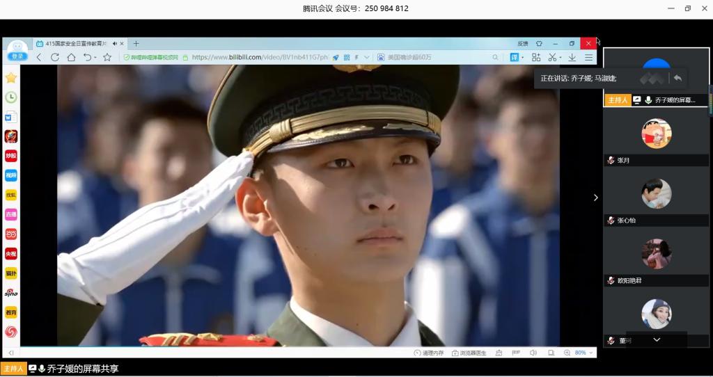 本站讯 2020年4月15日上午,2018级统计学二班于腾讯会议举办“国家安全教育”主题班会,本次班会举办的目的为深入学习贯彻总体国家安全观思想,学习贯彻习近平总书记关于国家安全的重要讲话精神。班会由班长乔子媛主持,2018级统计学二班全体同学参加。