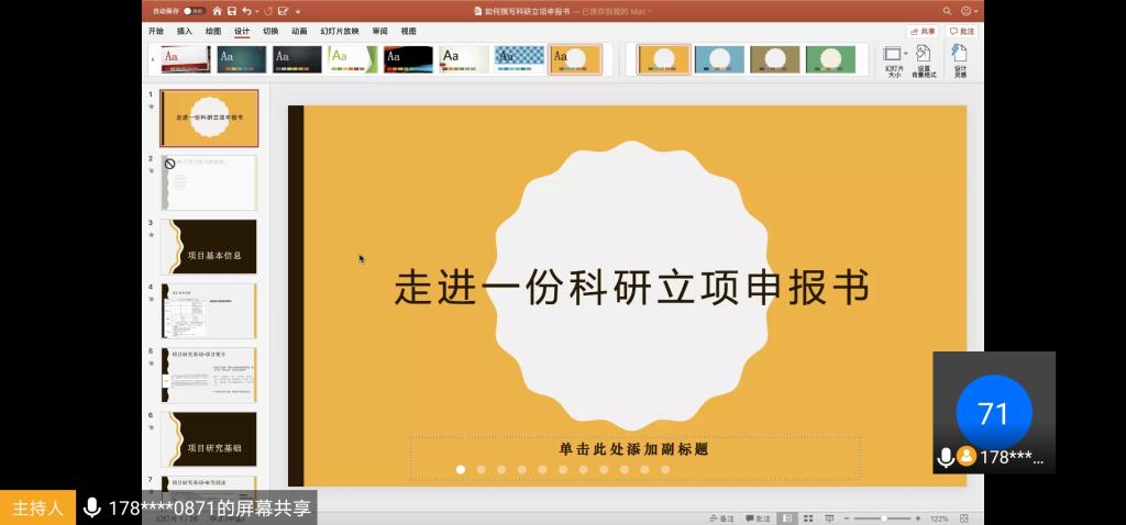 科研班主任李佳琪承接前三次科研班会,针对科研立项的选题方面和书写科研立项申报书方面进行了相应的补充和进一步的指导,并以“走进一份科研立项申报书”这一主题为重点,开展了此次科研班会。首先,班主任承接上一次科研班会中“怎样从茫茫互联网中获取我们需要的内容?”和“怎样确定心仪的课题?”两个主题,以一份万象城娱乐awc线路国家级大学创新训练项目申报书为例,讲解了选题要注意的问题的同时,带领同学们进入万象城娱乐awc线路威海校区万象城娱乐awc线路官网,浏览各种科研立项答辩的活动通知与内容。然后,班主任为我们阐明了科研立项申报书的关键组成部分:项目基本信息与项目简介、项目研究基础与研究综述、项目研究方案与研究内容方法的重点难点和创新之处等等,也为同学们提供了许多搜寻文献与文献阅读的方法,对于“怎样写好一篇科研立项申报书”给同学们提出了许多建设性的意见。班主任向我们传授了科研立项过程中的心态:有痛苦、有满足、有挫败,但只要尝试,就会有进一步的发展。在组队和领导队伍方面,班主任李佳琪根据自己的亲身经历,跟同学们分享了自己的经验。