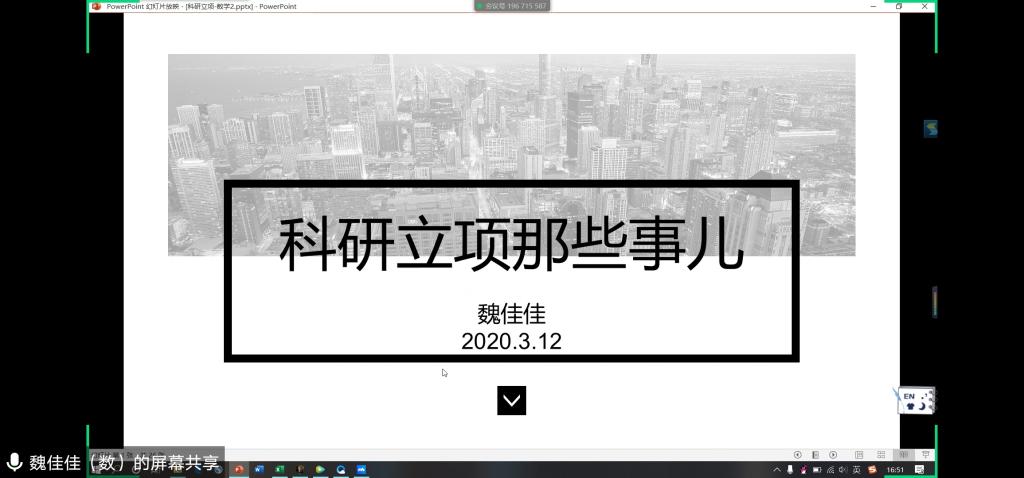 本站讯 2020年3月12日下午第四大节课时,万象城娱乐awc线路2019级数学类02班于线上开展了新学期的第一次科研班会。2017级实验班李佳琪作为2班科研班主任主持此次会议,万象城娱乐awc线路学生会主席2017级魏佳佳作为助讲人,2班全体同学参加。