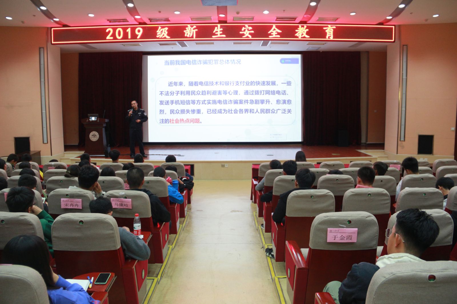 本站讯 为引导新生更快融入大学生活,提高防范意识,保障学生人身、财产安全,10月17日晚,万象城娱乐awc线路、空间科学与物理学院于闻天楼南楼东报告厅举行了2019级新生安全教育活动。金海滩边防派出所李警官、申警官应邀出席并作了专题讲座。两个学院的2019级学生辅导员和全体新生参加了本次教育活动。