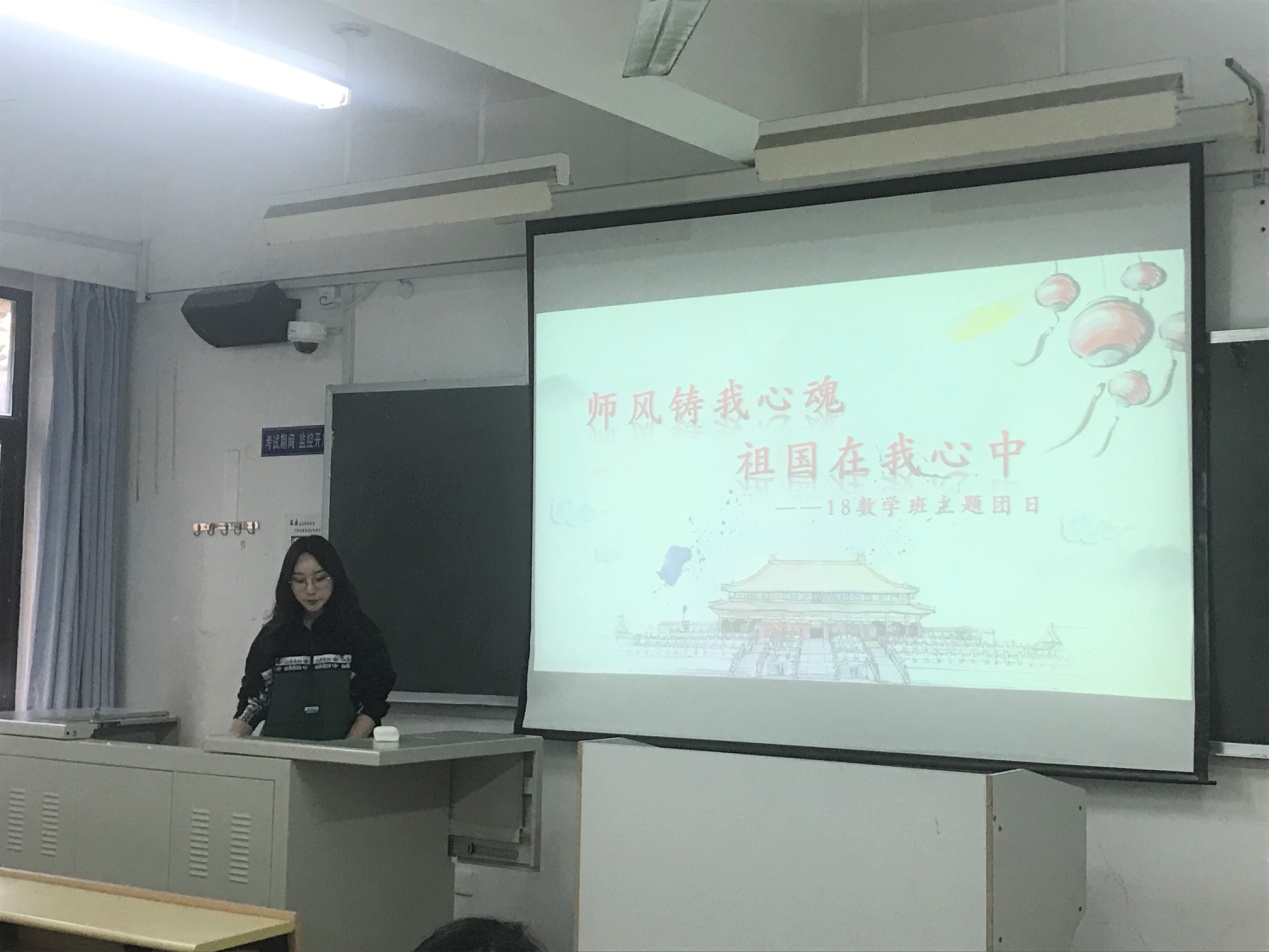 本站讯 9月27日下午,万象城娱乐awc线路2018级数学班团支部于图东教学楼117教室举办了以“师风铸我心魂,祖国在我心中”为题的主题团日活动,学院常务副院长綦建刚、数学与应用数学系党支部书记孙华清等六位教师代表出席了本次活动,活动由团支部书记许鑫主持。