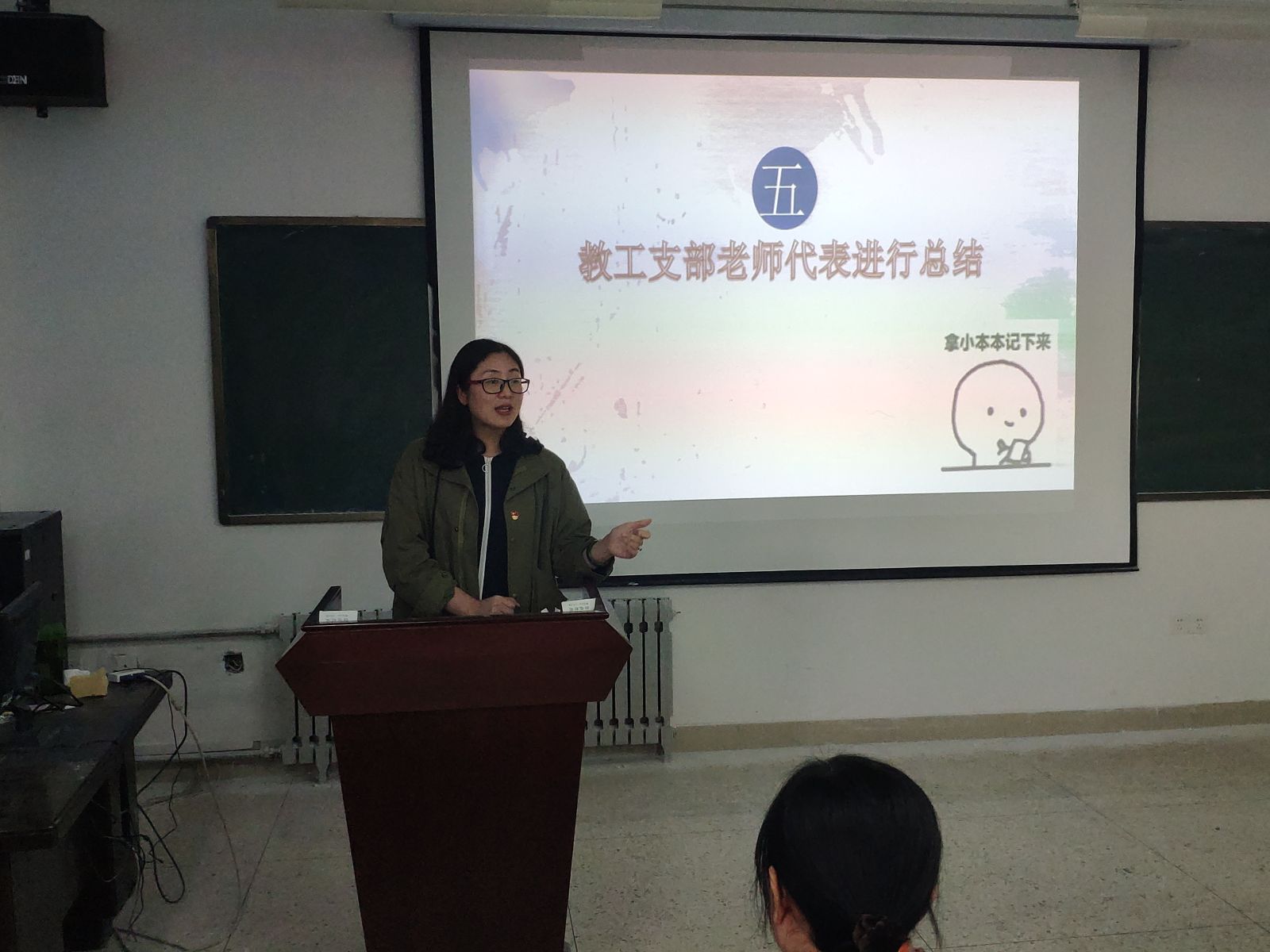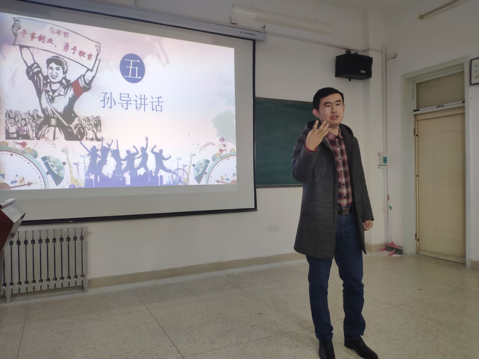 活动伊始,大家一起观看视频“我们的新时代”,吕靖简要介绍了此次活动的主要环节。在齐唱团歌后,大家通过一小段视频回顾五四运动历史,观看习主席寄语。观看完毕后,吕靖提出几个问题,并由此展开了激烈的团小组讨论。讨论结束,每个团小组推选出一名代表,总结各团小组的讨论结果。教工支部党员王鹏飞老师总结发言,她指出,青年是民族复兴路上的中坚力量,作为祖国的未来,青年一代一定要努力学习并践行五四精神,做好祖国的后备军。接着,是班级微信推送特别板块“我心有一计”的总结,为纪念五四一百周年,此板块专门推出了“信计青年说”主题,同学们从不同的角度出发,诉说自己心中的爱国情。此外,吕靖从“青年大学习”每期的问题中随机抽选了若干题进行现场提问。最后孙磊老师发言,他着重讲解了部分题目,并希望同学们能够深入理解这些知识。