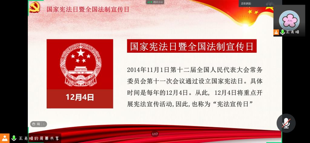 本站讯 12月6日上午10:00,2019信计团支部于腾讯会议举办“弘扬宪法精神,强化法制观念”主题团日活动。此次会议由团支书王肖晴主持,共48名团员参加了此次活动。