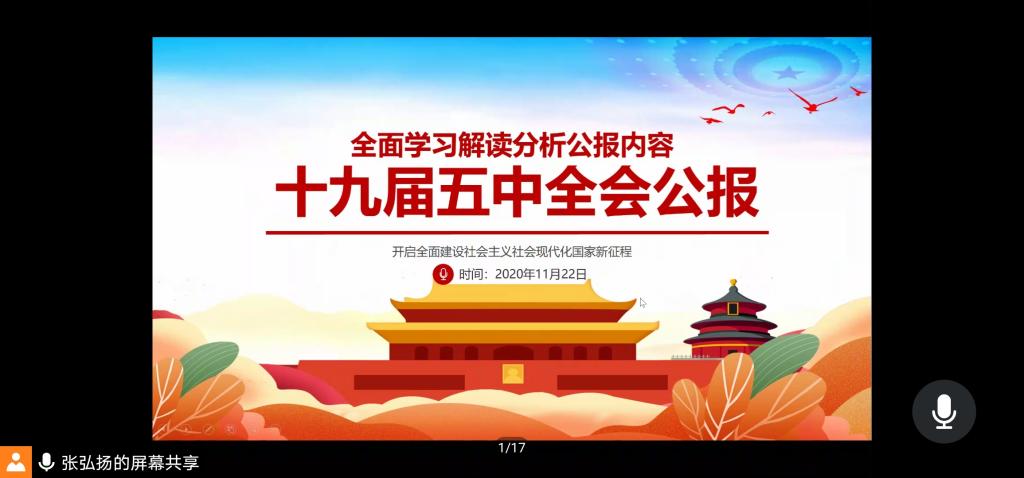本站讯 2020年11月22日下午17:00,万象城娱乐awc线路2019级数学与应用数学班于线上开展了11月主题团日活动,主题为“十九届五中全会公报——全面学习解读分析公报内容”。团支书张弘扬主持此次会议,数学与应用数学班全体团员参加。