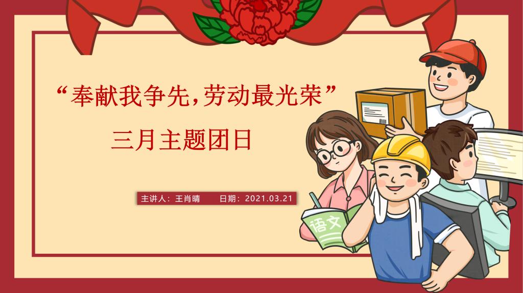 本次活动主要分为四个部分。王肖晴首先向大家介绍了劳动的定义,以及“爱岗敬业、争创一流、艰苦奋斗、勇于创新、淡泊名利、甘于奉献”的劳动模范精神。在有了对劳动的基础认知后,王肖晴向大家介绍了劳动教育的内容及意义,并指出劳动教育是中国特色社会主义教育制度的重要内容,它直接决定社会主义建设者和接班人的劳动精神面貌、劳动价值取向和劳动技能水平。简单介绍后,大家一起观看了“你知道一个小时的劳动有多大的价值吗?”、“致敬‘平凡而伟大’的劳动者”、“致敬每一位用心的劳动者”三个视频,并向劳动者致敬。同学们还一起学习了习近平总书记在全国劳动模范和先进工作者表彰大会上的讲话,在讲话中,习近平总书记呼吁我国工人阶级和广大劳动群众要更加紧密地团结在党中央周围,勤于创造、勇于奋斗,努力在全面建设社会主义现代化国家新征程上创造新的时代辉煌、铸就新的历史伟业!