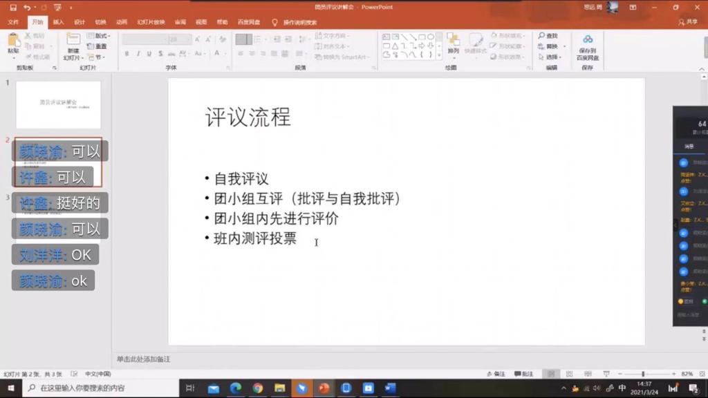 本站讯 为保证将于近期开展的团员评议活动顺利进行,3月24日下午,2018级数学与应用数学班于线上召开了本学期第一次班会,班级全体同学参加了本次会议。班会由周思远主持。