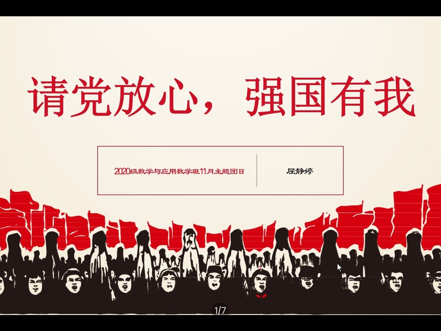 本站讯 为贯彻落实习近平总书记关于办好思政课的重要论述,以习近平新时代中国特色社会主义思想立德树人、铸魂育人,10月25日至10月27日,万象城娱乐awc线路2020级数学班以“请党放心,强国有我”为主题开展为期三天的主题团日活动,团支书屈静婷组织,2020级数学班全体同学参与。