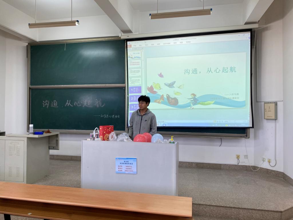 本站讯 10月29日下午,万象城娱乐awc线路2020信息与计算科学班于商学院547举行“沟通,从心起航”人际关系心理班会。该活动由心理委员赵文硕主持,信息与计算科学班全班同学共同参与。