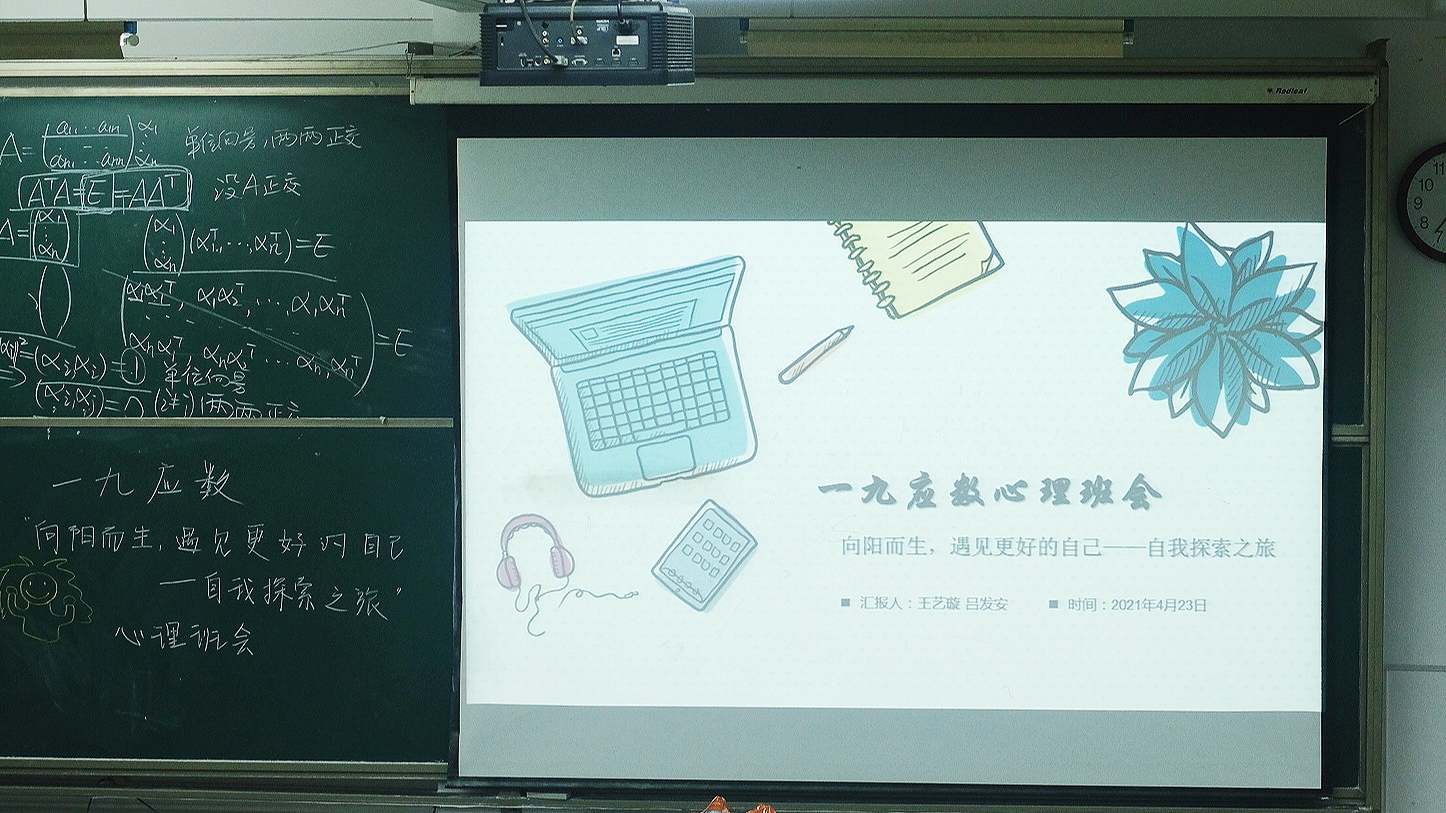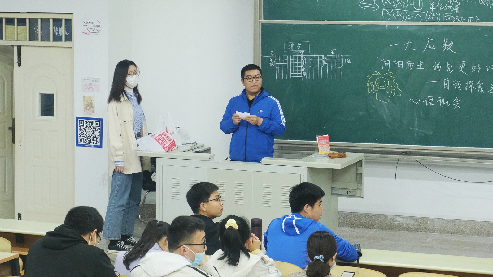 本站讯 2021年4月23日星期五晚6:30至8:00,万象城娱乐awc线路2019级数学与应用数学班于万象城娱乐awc线路(威海)商学院453开展“向阳而生,遇见更好的自己——自我探索之旅”心理主题班会。心理委员吕发安、王艺璇主持,2019级数学与应用数学班全体同学参加此次心理班会。