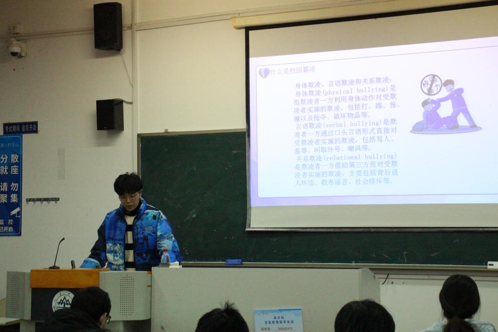 本站讯 2021年11月23日下午16:00,2019级信息与计算科学班在商院448召开“防欺凌”主题班会活动,活动由2019级信息与计算科学班班长赵大成主持,班级共51位同学参加。