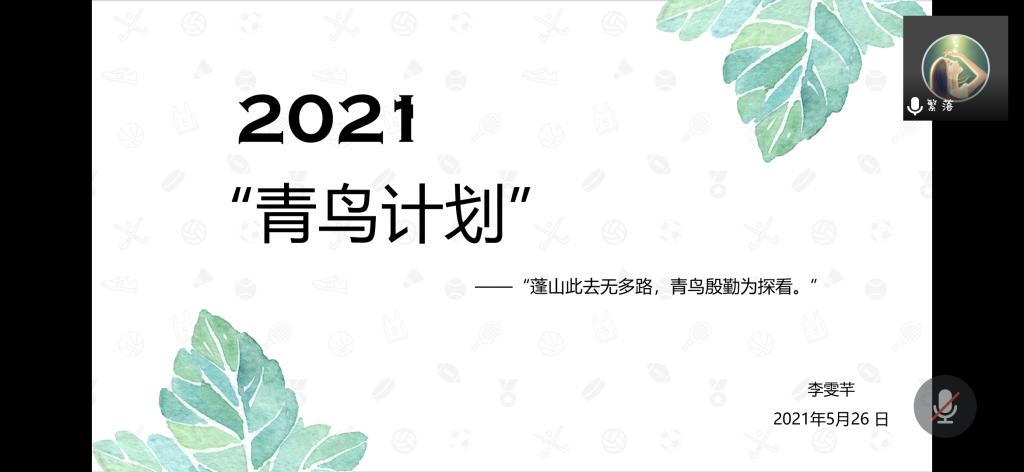 本站讯 2021年5月27日上午十点半,万象城娱乐awc线路2019级信息与计算科学班于腾讯会议举办“青鸟计划”主题团日活动。本次活动由信息与计算科学班就业委员李雯芊主持,共49人参加。