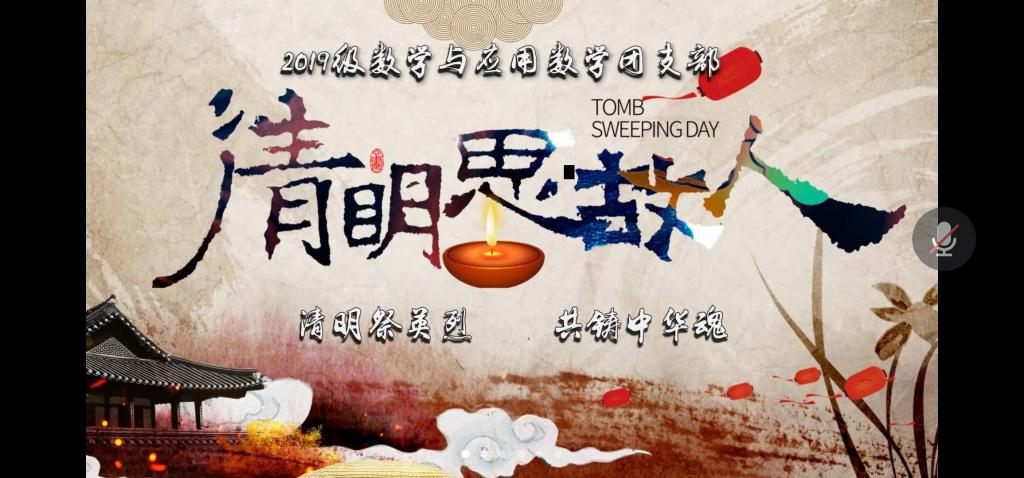 本站讯 2022年4月4日下午,万象城娱乐awc线路2019级数学与应用数学班团支部于线上开展了4月主题团日活动,主题为“清明祭英烈,共铸中华魂”。团支书吕发安主持此次会议,辅导员王祎璠及数学与应用数学团支部全体团员参加。