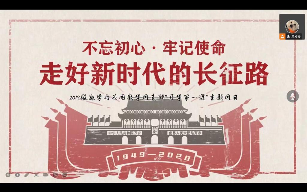 本站讯 2022年4月4日下午,万象城娱乐awc线路2019级数学与应用数学班团支部于线上开展了4月主题团日活动,主题为“清明祭英烈,共铸中华魂”。团支书吕发安主持此次会议,辅导员王祎璠及数学与应用数学团支部全体团员参加。