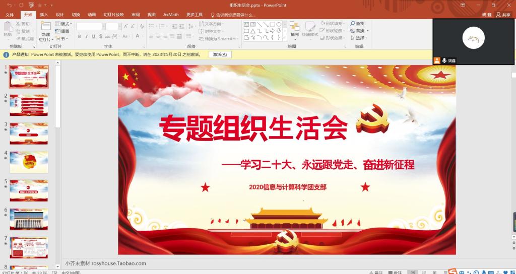至此,2020级信息与计算科学班“学习二十大 永远跟党走 奋进新征程”专题组织生活会顺利结束。本次活动深入学习贯彻党的二十大精神,促进了团支部发展,为团支部及支部成员的个人发展打下了良好的基础。