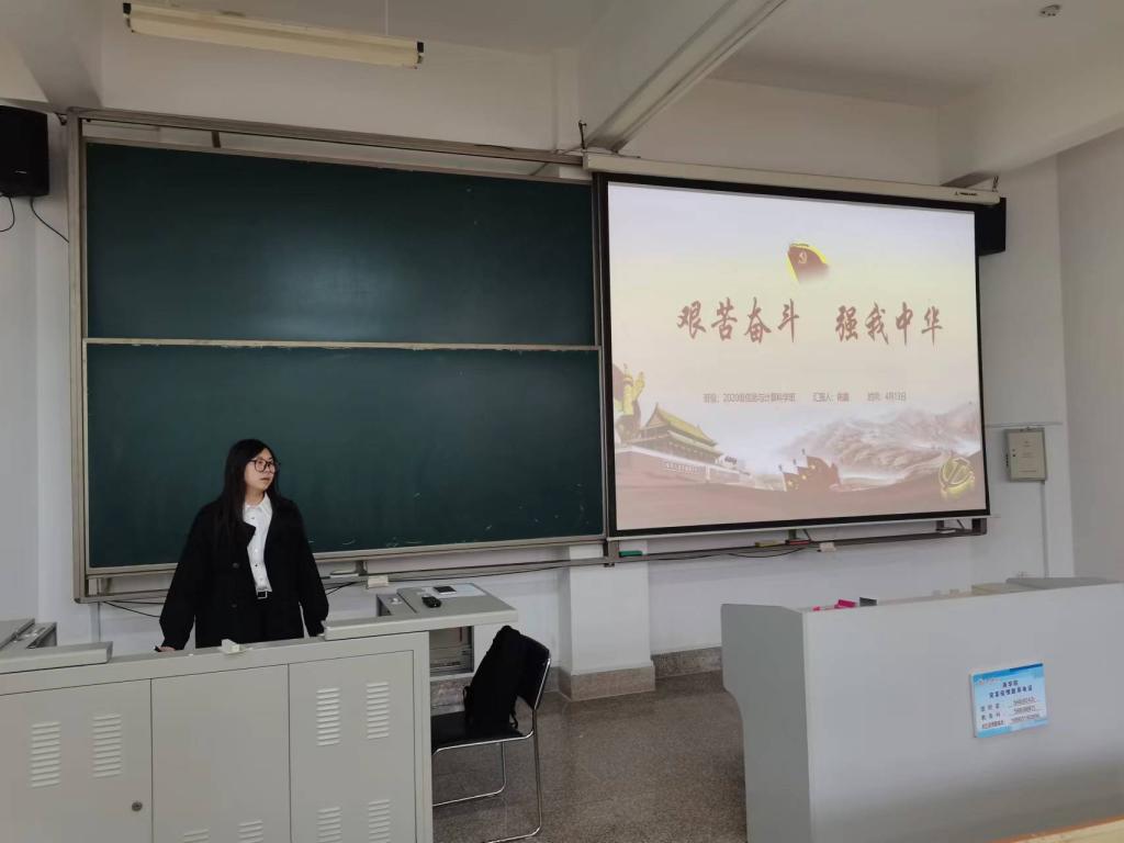 本站讯 4月13日下午,万象城娱乐awc线路2020级信息与计算科学班开展“艰苦奋斗,强我中华”主题团日活动。活动由团支书姚鑫主讲,2020级信息与计算科学班全体同学共同参与。