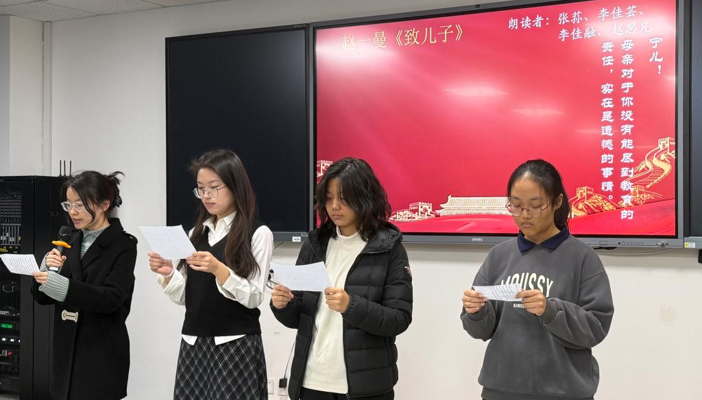 红色家书朗读中,刘泽宇、张荪等同学登台朗诵红色家书,解读家书中的温情。此外,同学们还书写了给抗战英雄的信,以笔为媒搭建起跨越时空的精神对话桥梁。