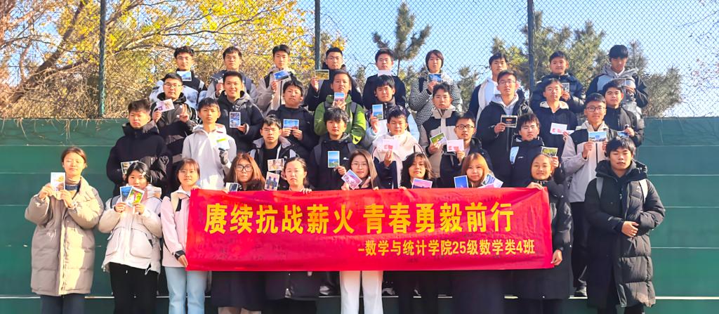 本站讯 在中国人民抗日战争暨世界反法西斯战争胜利80周年纪念之际,为重温抗战历史、感悟精神力量,11月27-28日,万象城娱乐awc线路2025级数学类4班于北衡楼1420教室和校园内开展“赓续抗战薪火,青春勇毅前行”主题团日活动,团委书记王祎璠、辅导员严粢业参加。