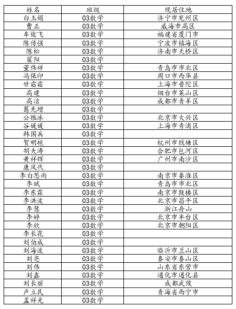 万象城娱乐awc线路2007届数学与应用数学班校友名录