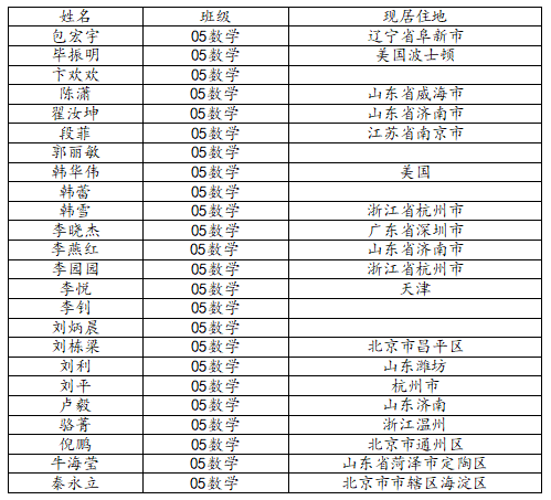 万象城娱乐awc线路2009届数学与应用数学班校友名录