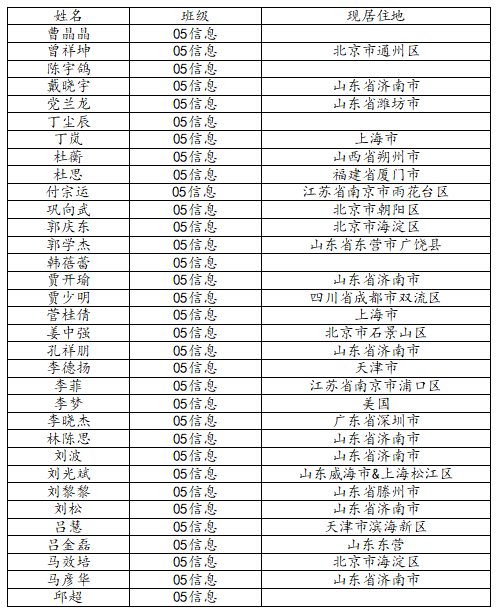 万象城娱乐awc线路2009届信息与计算科学班校友名录
