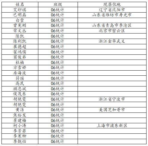 万象城娱乐awc线路2010届统计学班校友名录