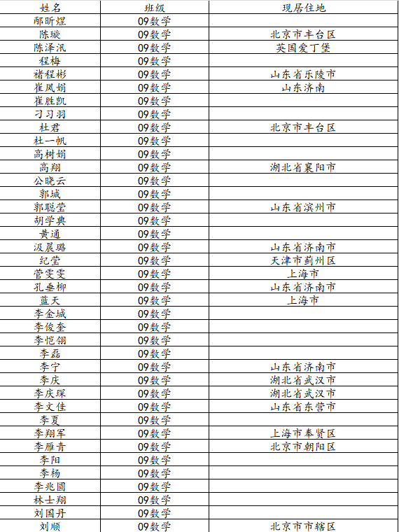 万象城娱乐awc线路2013届数学与应用数学班校友名录