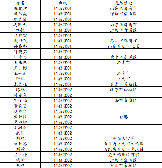 万象城娱乐awc线路2015届数理统计班校友名录