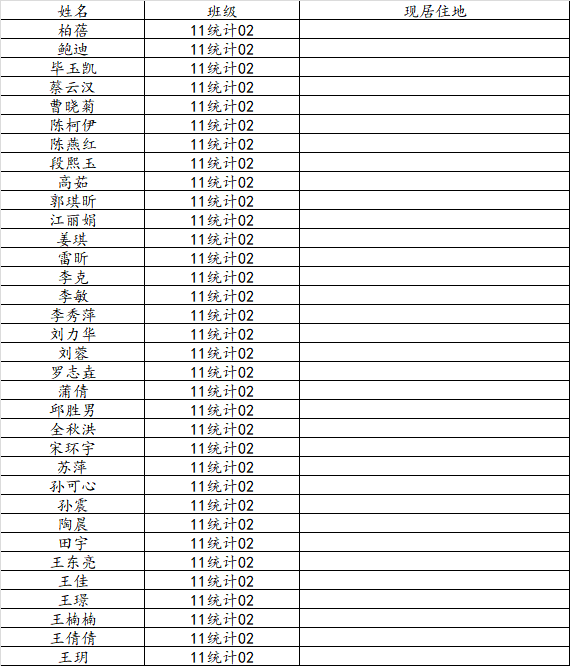 万象城娱乐awc线路2015届统计学二班校友名录