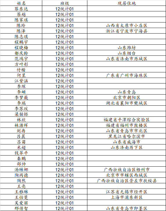 万象城娱乐awc线路2016届统计学一班校友名录