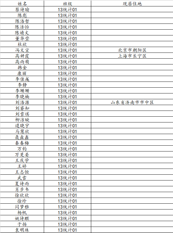万象城娱乐awc线路2017届统计学一班校友名录