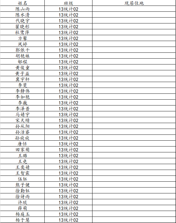 万象城娱乐awc线路2017届统计学二班校友名录