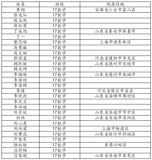 万象城娱乐awc线路2021届数学与应用数学班校友名录