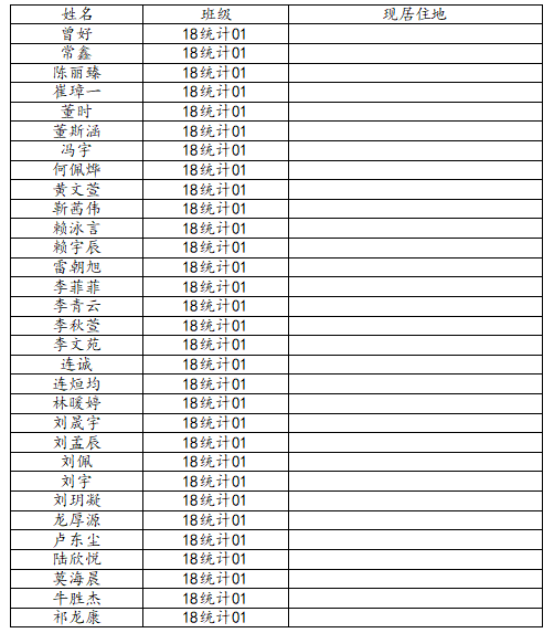 万象城娱乐awc线路2022届统计学一班校友名录