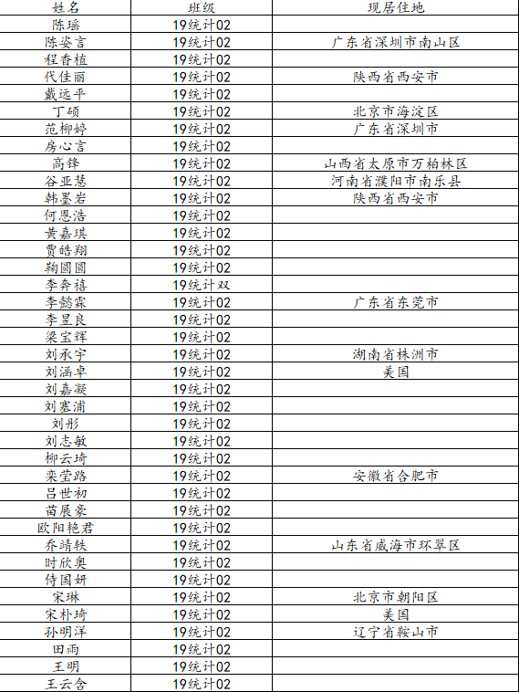 万象城娱乐awc线路2023届统计学二班校友名录